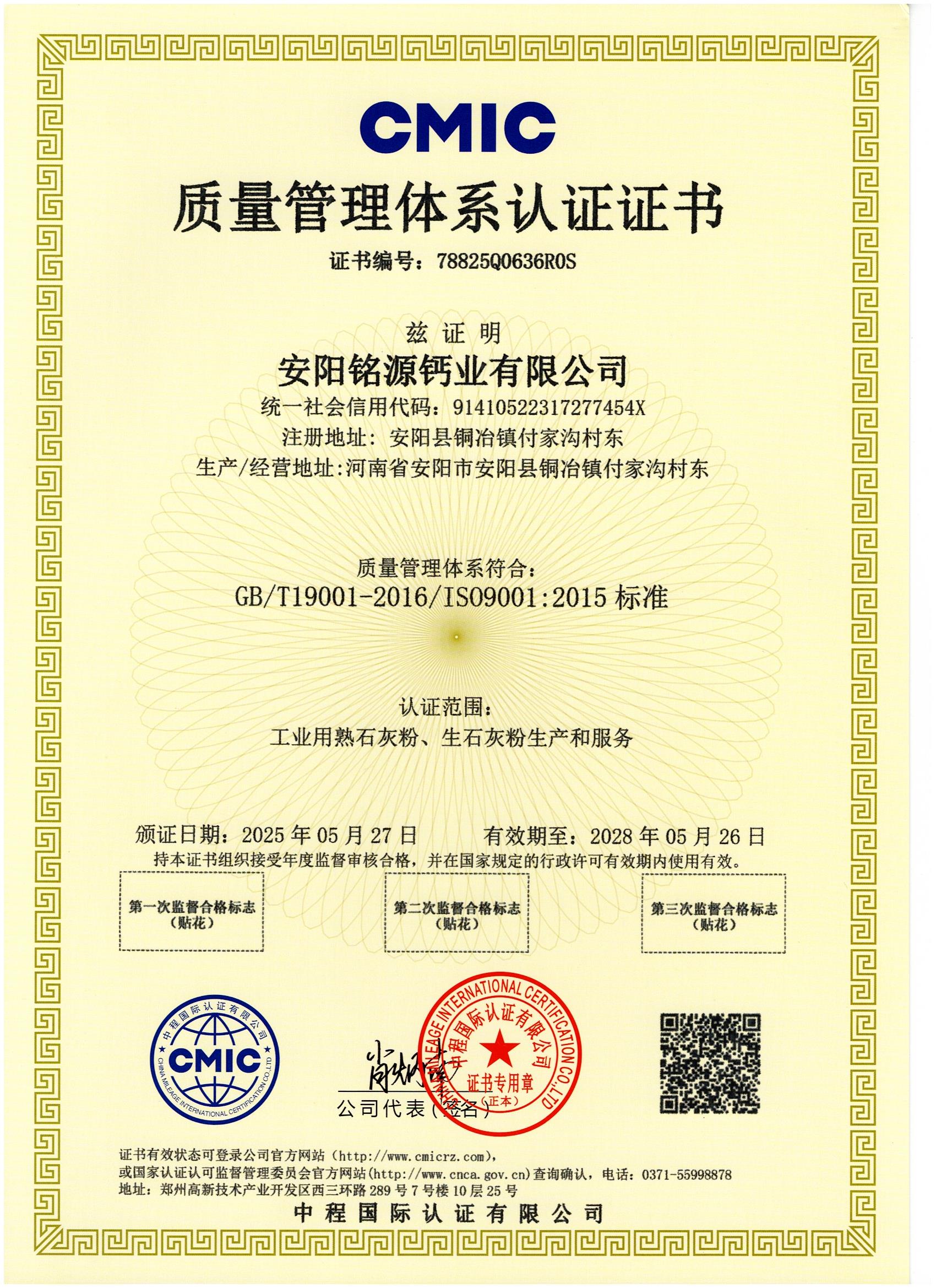 質(zhì)量管理體系認(rèn)證證書(shū)